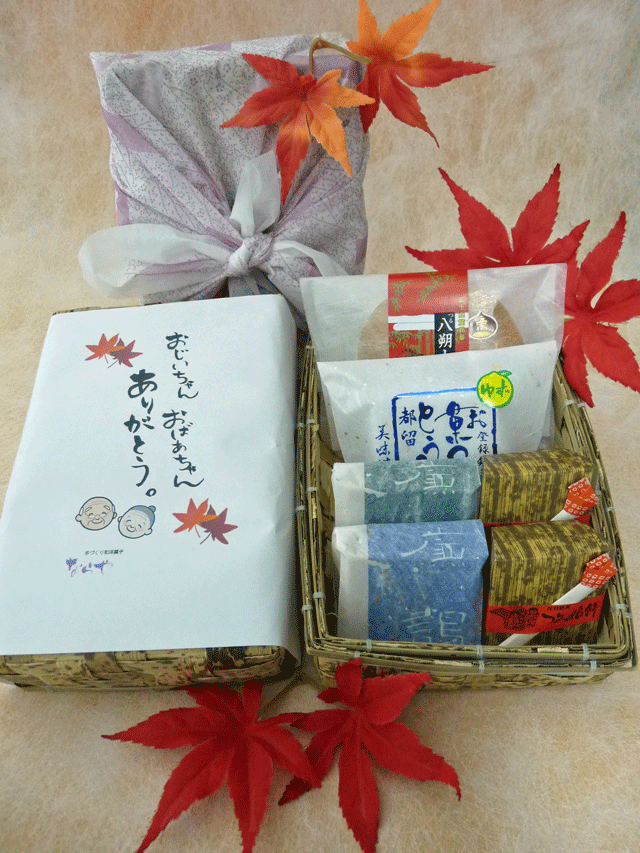 贈って喜ばれる、「かわいい竹かご入り敬老の日セット」を作りました。数量限定です!